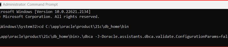 .\ dbca -J-Doracle.assistants.dbca.validate.ConfigurationParams=false