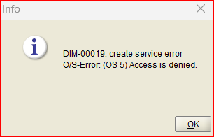- DIM-00019: create service error O/S-Error: (OS 5) Access is denied.