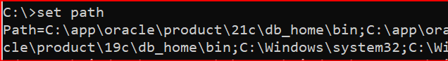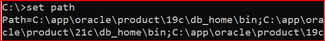 C:\> set path=C:\app\oracle\product\19c\db_home\bin;C:\app\oracle\product\21c\db_home\bin;C:\app\oracle\product\19c\db_home\bin;
