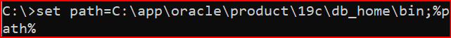 C:\> set path=C:\app\oracle\product\19c\db_home\bin;%path% |