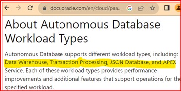 What workload types are supported by Oracle Cloud Infrastructure Autonomous Database?
