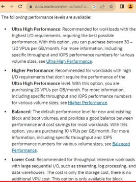 Which performance level is NOT available in the Oracle Cloud Infrastructure Block Volume service?