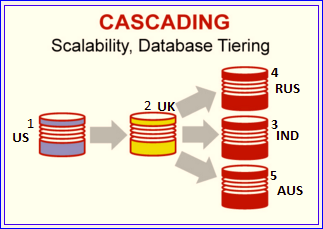 Oracle GoldenGate supports cascading synchronization, where Oracle GoldenGate propagates data changes from the source database to a second database, and then on to a third database. In this configuration: