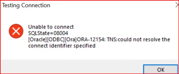 Error: unable to connect SQLState=08004 [Oracle][ODBC][Ora]ORA-12154:TNS could not resolve the connect identifier specified